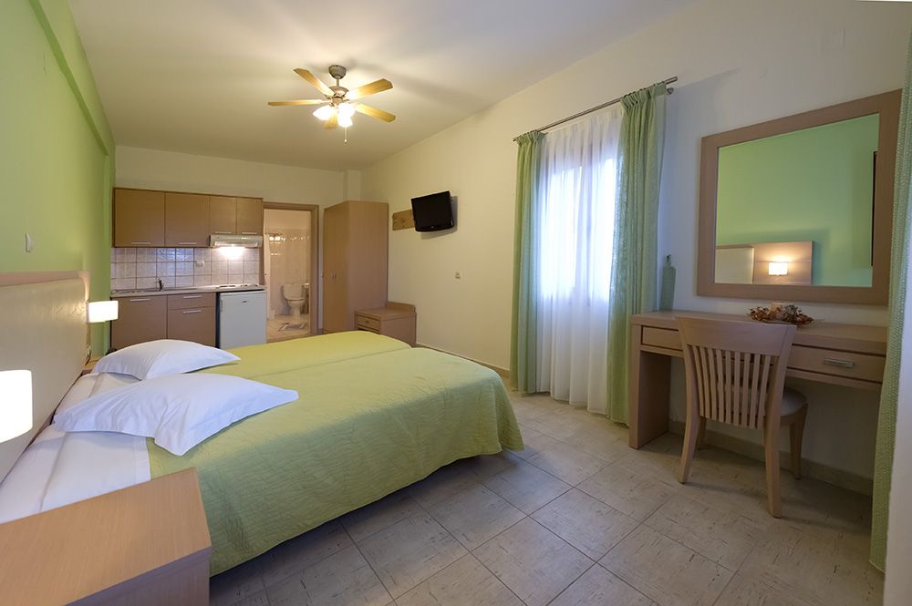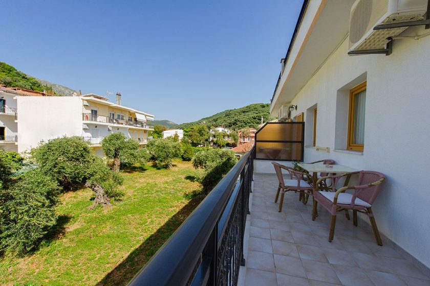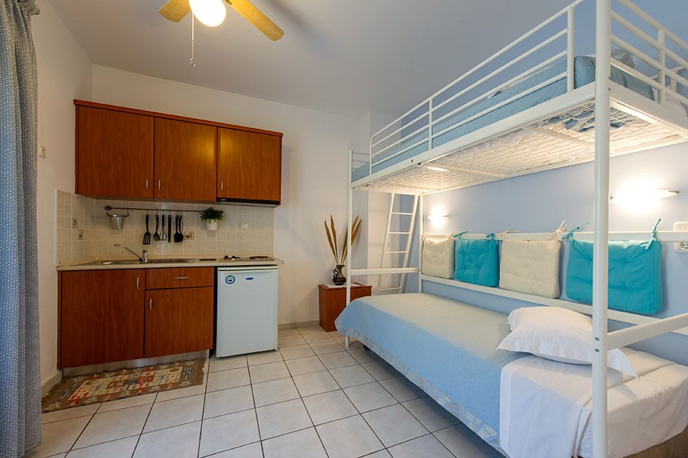 Rooms with kitchen facilities and furnished terrace or balcony, overlooking the mountains and the city. The studios can accommodate between 2 – 4 persons and are ideal for families with little children or infants.