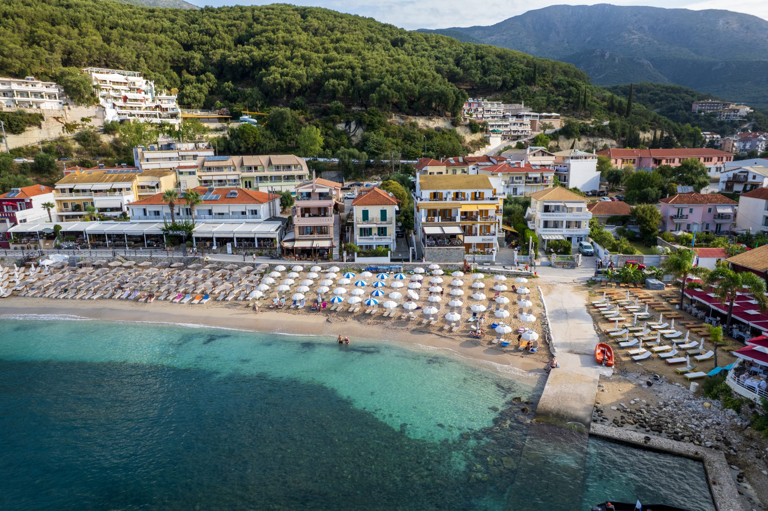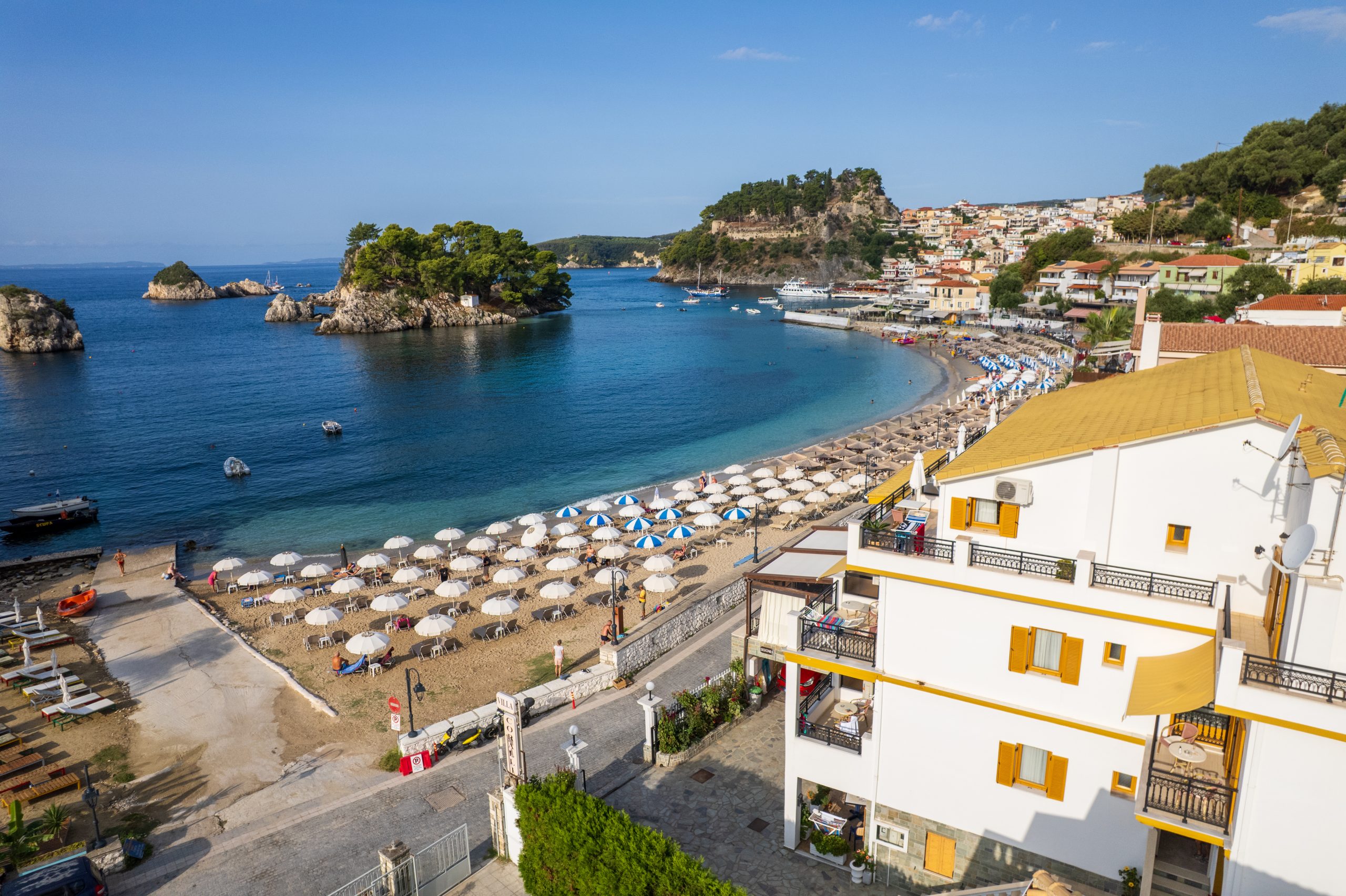 The open air terrace of our coffee bar offers spectacular and marvelous views of the Ionian Sea, the town of Parga, the island of Panagia and the Venetian castle.